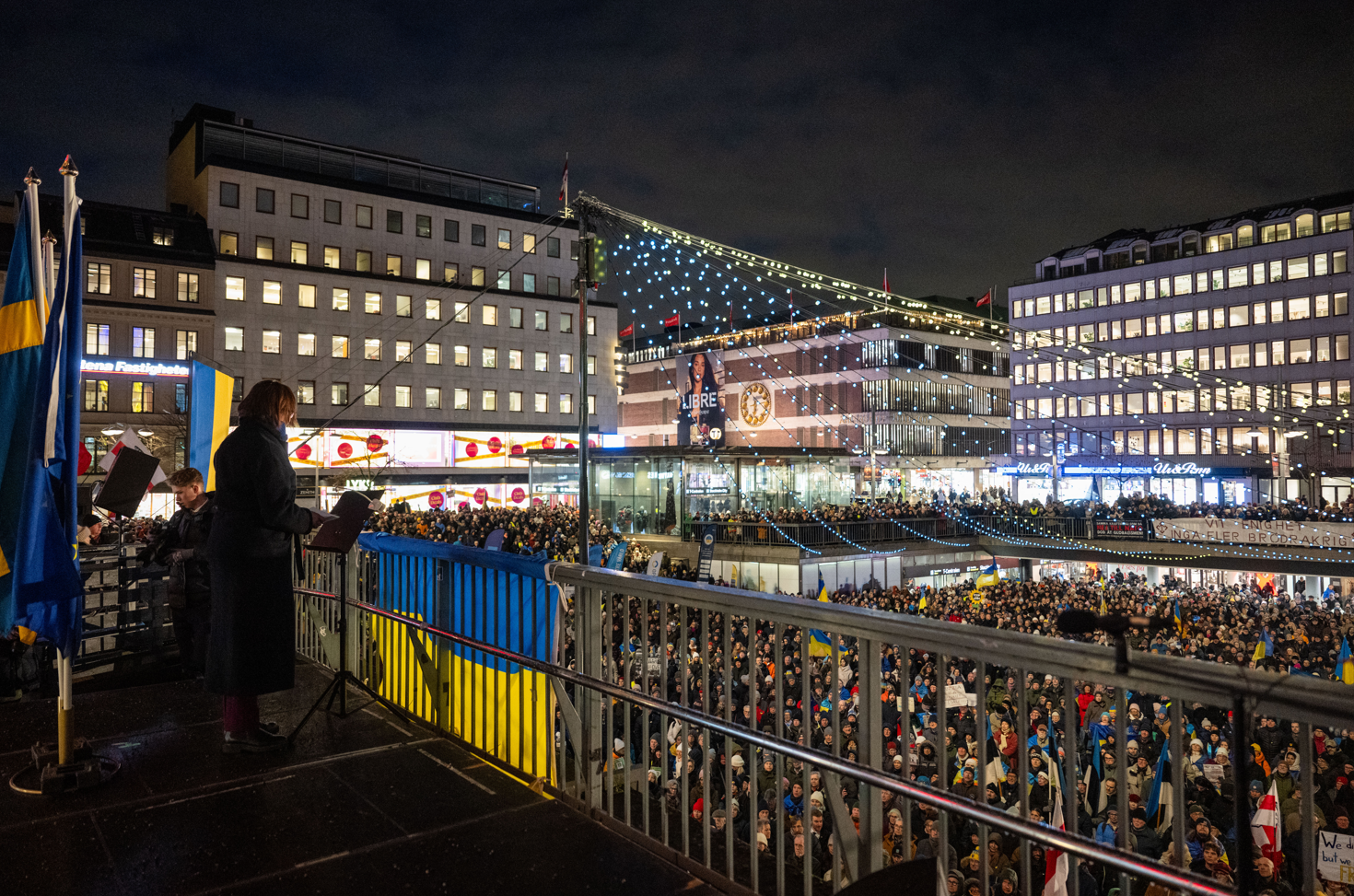 Fyra år i krig: Utrikesminister Maria Malmer Stenergard talar på Sergels torg